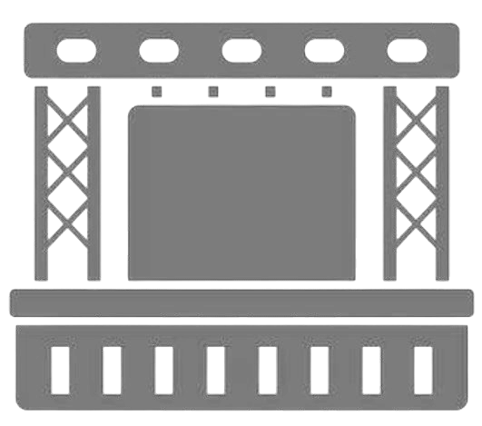 The lighting grid, the sound infrastructure, the stage itself. The bones that make everything else possible.